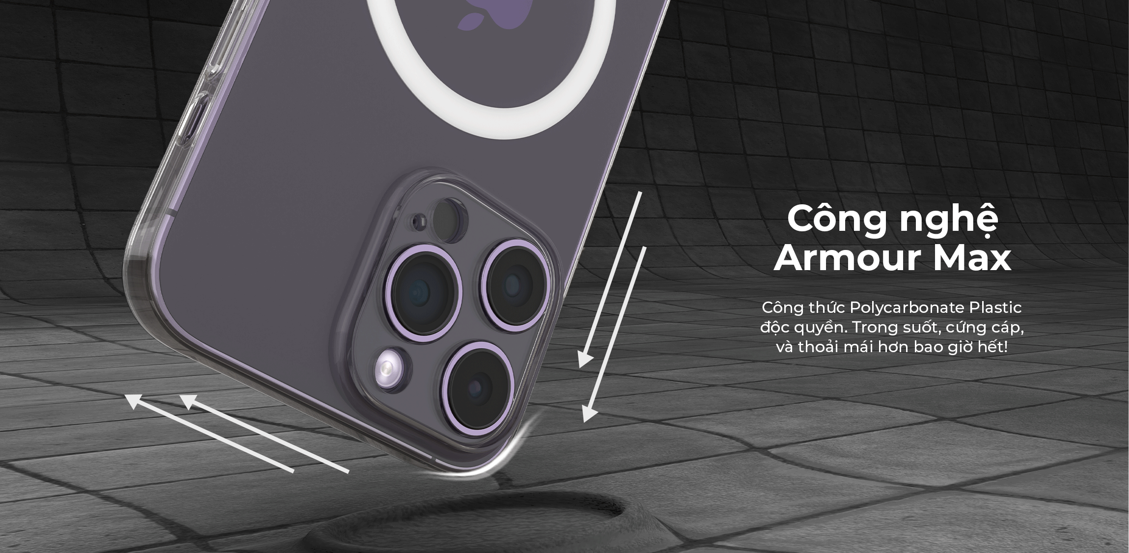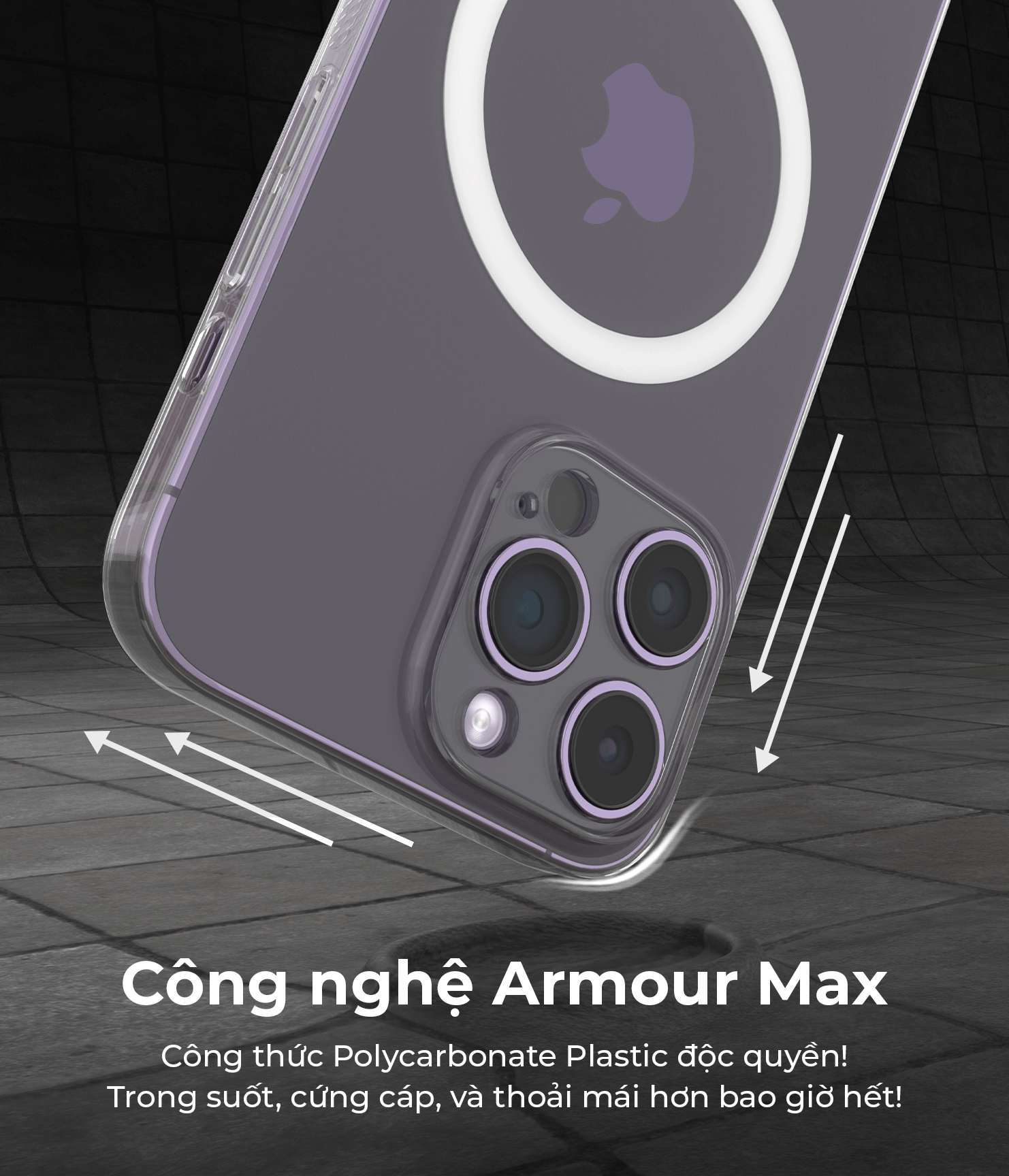 Chất liệu Armour được nghiên cứu độc quyền, trong suốt, cứng cáp và luôn như mới.