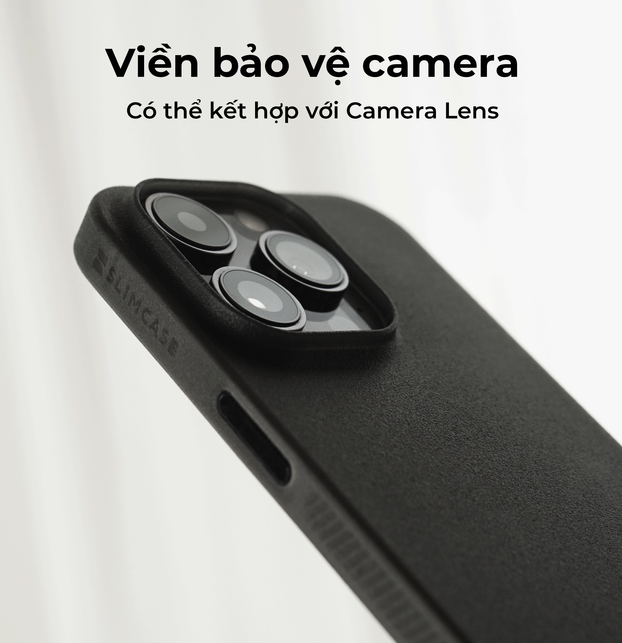 Do thiết kế siêu mỏng nên ốp Slimcase không thể dùng trên điện thoại có dán ppf. Với Slimcase Pro có thể sử dụndụng cùng camera lens. Nhưng Slimcase Classic và Slimcase Unique không thể gắn thêm camera lens do phần camera đục lỗ nhỏ để bảo vệ tốt hơn.